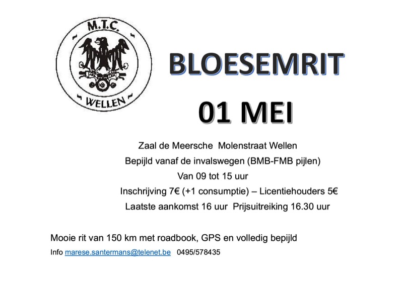 Telt voor:                      BMB/FMB – Motor Sport Vlaanderen.                      MTCH vertrekuur: ???